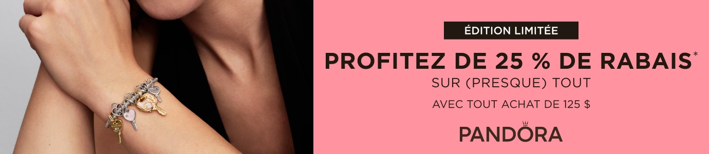 Fondée en 1982, Pandora a établi son siège social à Copenhague, au Danemark. L’entreprise est reconnue dans le monde entier pour ses bijoux contemporains finis à la main. Les bijoux Pandora sont faits d’or 14 carats, En argent sterling plaqué or 18K, d’argent sterling et de métaux Pandora Rose de grande qualité d’origine éthique, et chaque pierre est appliquée à la main par une équipe d’artisans dévoués et compétents. Outre les chams et bracelets Pandora emblématiques, les bagues, les boucles d’oreilles et les colliers Pandora sont tout aussi magnifiques et polyvalents. Venez vous laisser inspirer à votre boutique Bijoux Pandora située à Richmond Hill, ON dès aujourd’hui.